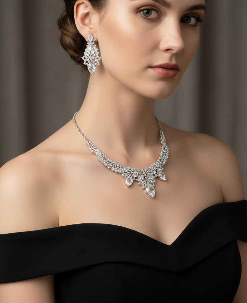 Our American Diamond Necklace Sets feature a wide range of elegant designs, from classic and traditional to modern and contemporary styles, crafted to suit every occasion and outfit. Made with high-quality American diamonds that deliver a brilliant, diamond-like sparkle, each set includes a beautifully designed necklace with matching earrings.Lightweight, skin-friendly, and comfortable to wear, these versatile sets are ideal for weddings, parties, festivals, formal events, and everyday elegance, offering a luxurious look at an affordable price and making them a perfect choice for both personal wear and gifting.