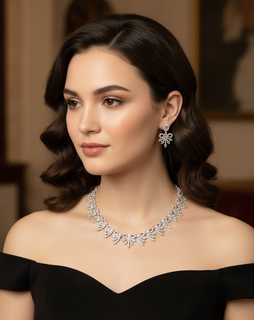 Our American Diamond Necklace Sets feature a wide range of elegant designs, from classic and traditional to modern and contemporary styles, crafted to suit every occasion and outfit. Made with high-quality American diamonds that deliver a brilliant, diamond-like sparkle, each set includes a beautifully designed necklace with matching earrings.Lightweight, skin-friendly, and comfortable to wear, these versatile sets are ideal for weddings, parties, festivals, formal events, and everyday elegance, offering a luxurious look at an affordable price and making them a perfect choice for both personal wear and gifting.