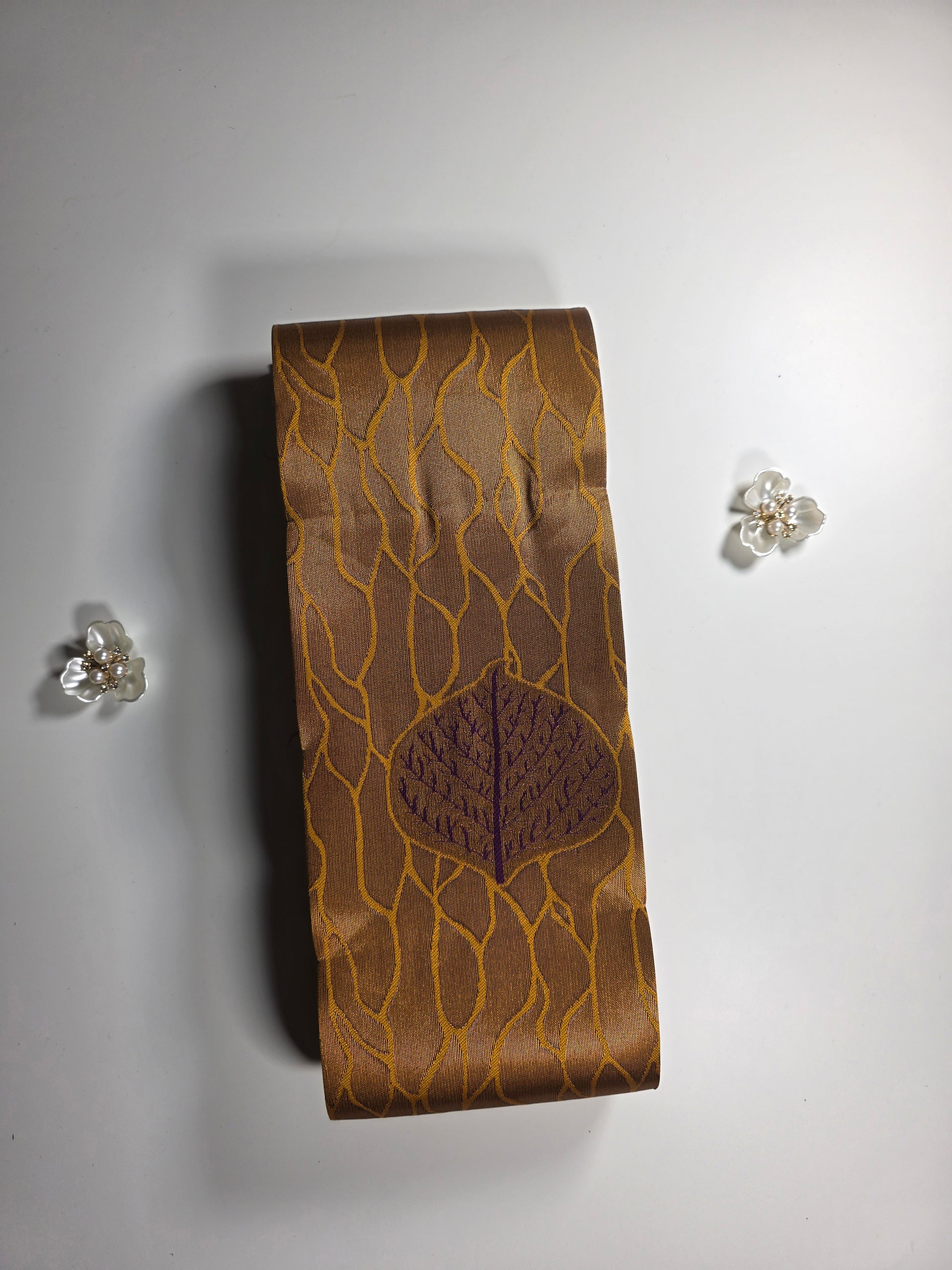 Luxurious Kubera Pattu saree with a vibrant mustard yellow body and elegant purple borders, adorned with intricate gold zari work.