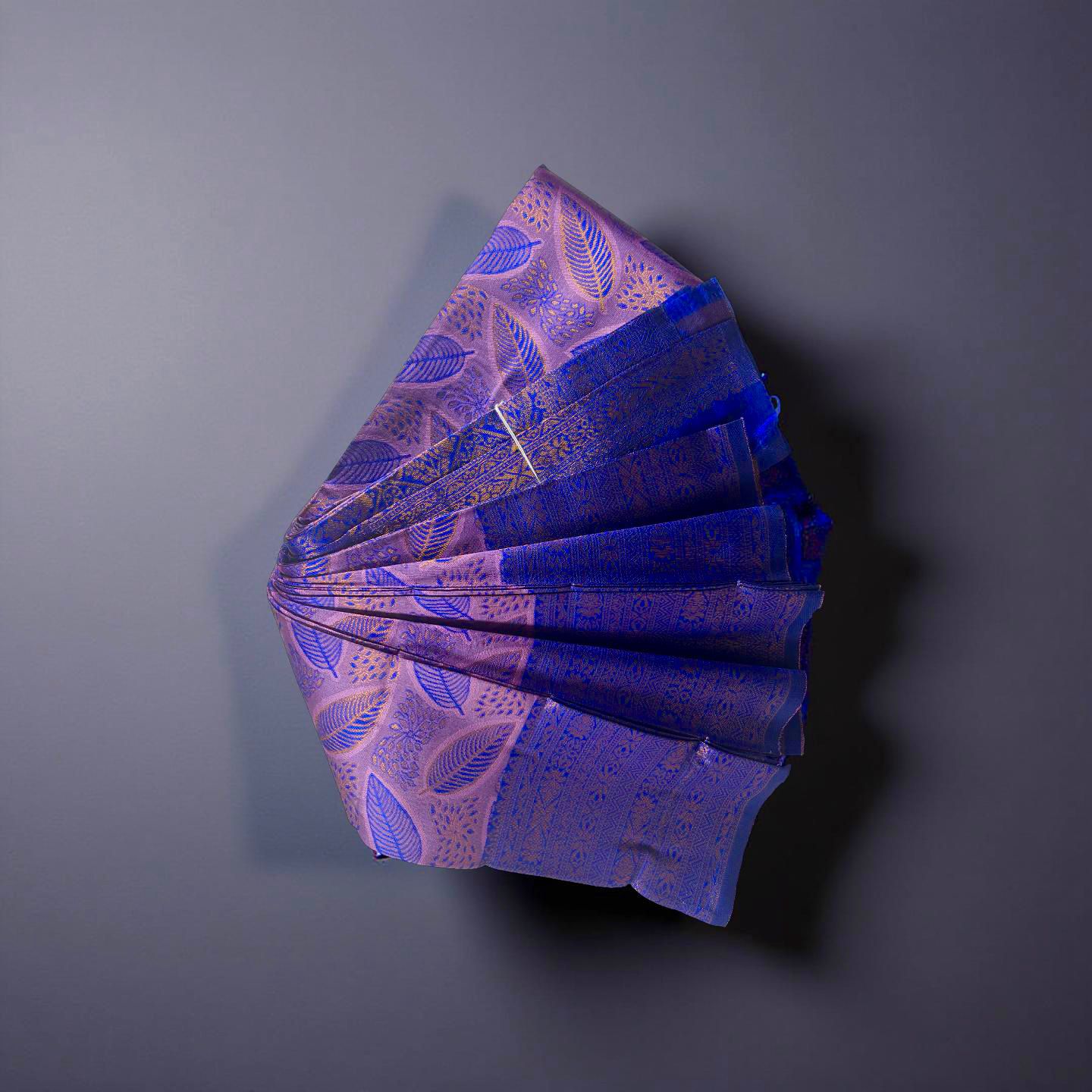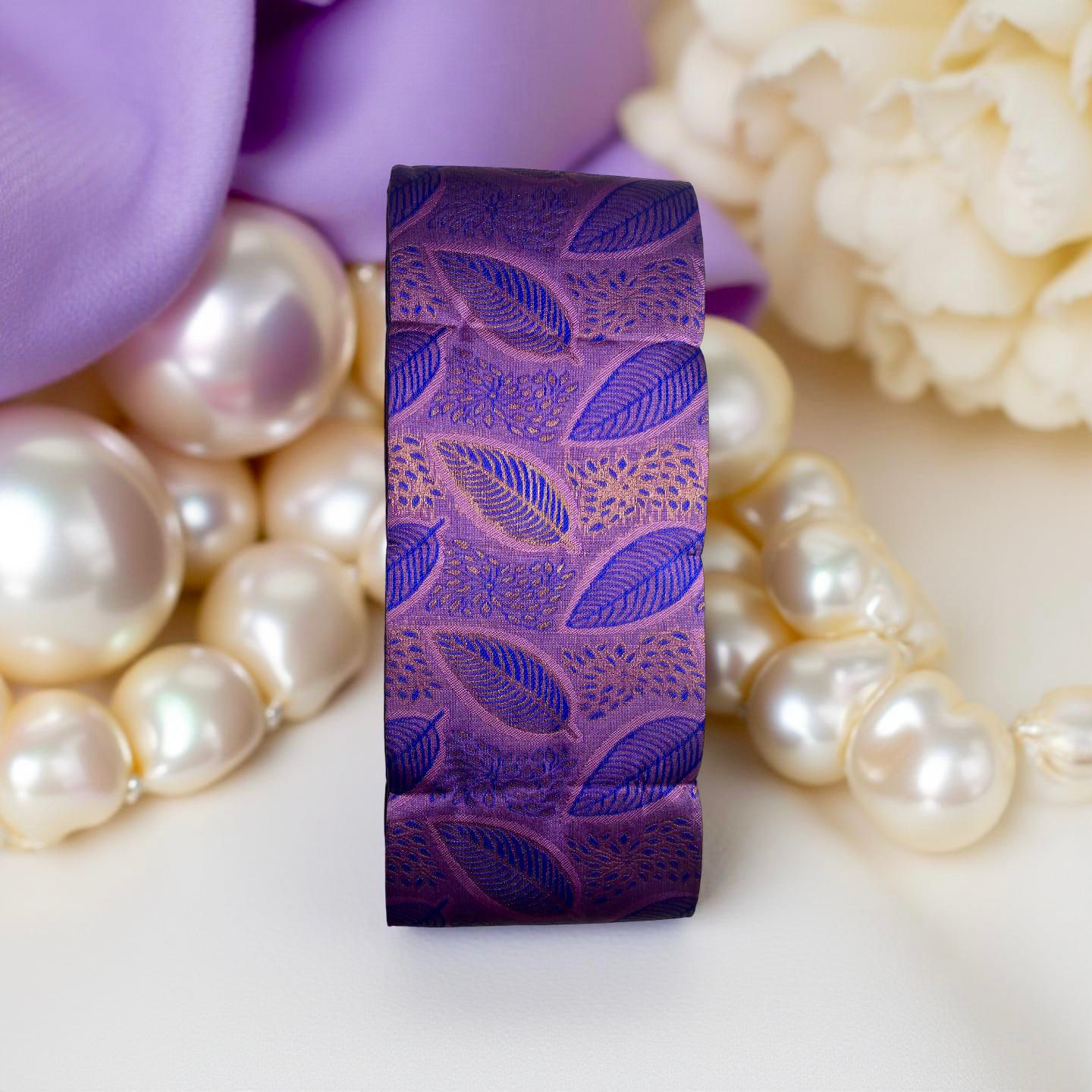 ''Regal Navy Blue & Violet Kubera Pattu Saree with Copper Zari Leaf Motifs"
